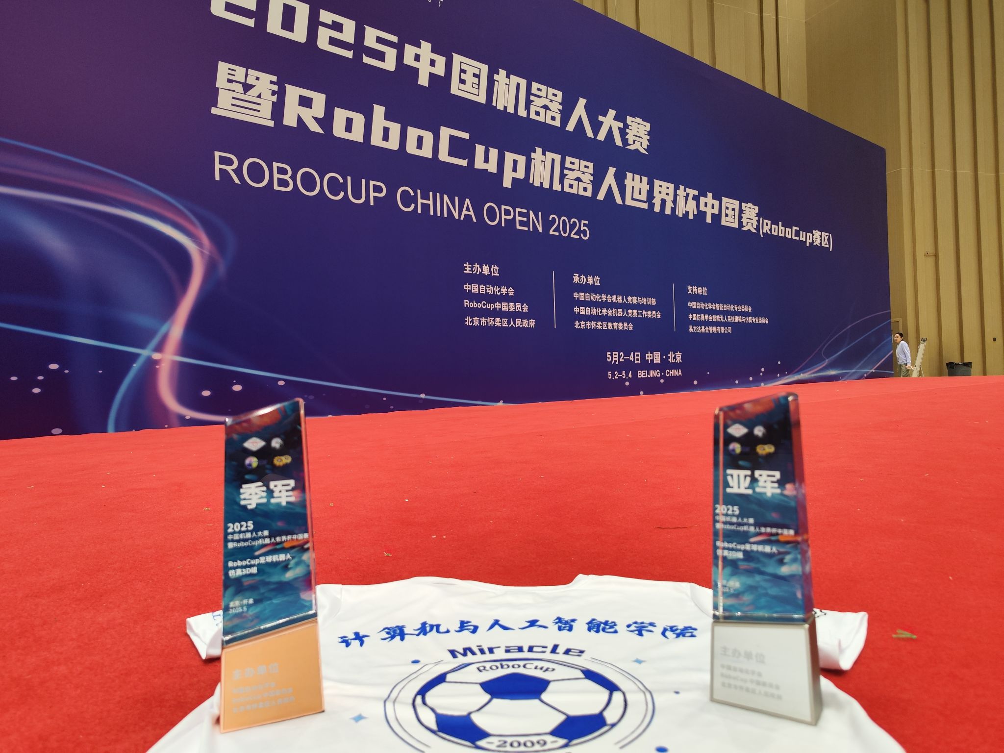 2025年5月2日至4日,2025中国机器人大赛暨RoboCup机器人世界杯中国赛在北京雁栖湖国际会展中心圆满落幕。作为国内机器人领域最具影响力的赛事之一,本届大赛由中国自动化学会、RoboCup中国委员会及北京市怀柔区人民政府联合主办,吸引了全国73所高校的233支参赛队伍同台竞技,成为展示机器人技术创新与学术成果的重要平台。经过激烈角逐,计算机与人工智能学院机器人创新实验室Miracle团队在RoboCup仿真2D与仿真3D项目中分别斩获亚军与季军,双双登上领奖台。